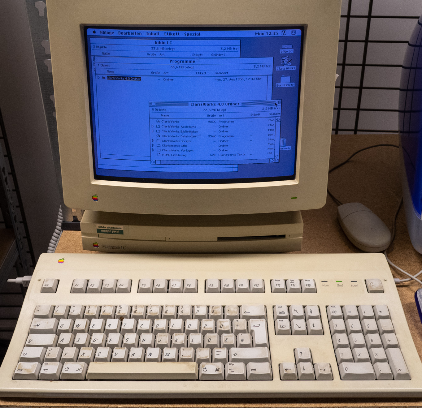 Der Computer benötigt Monitor, Tastatur und Maus. Es können alle gängigen ADB-Eingabegeräte verwendet werden.